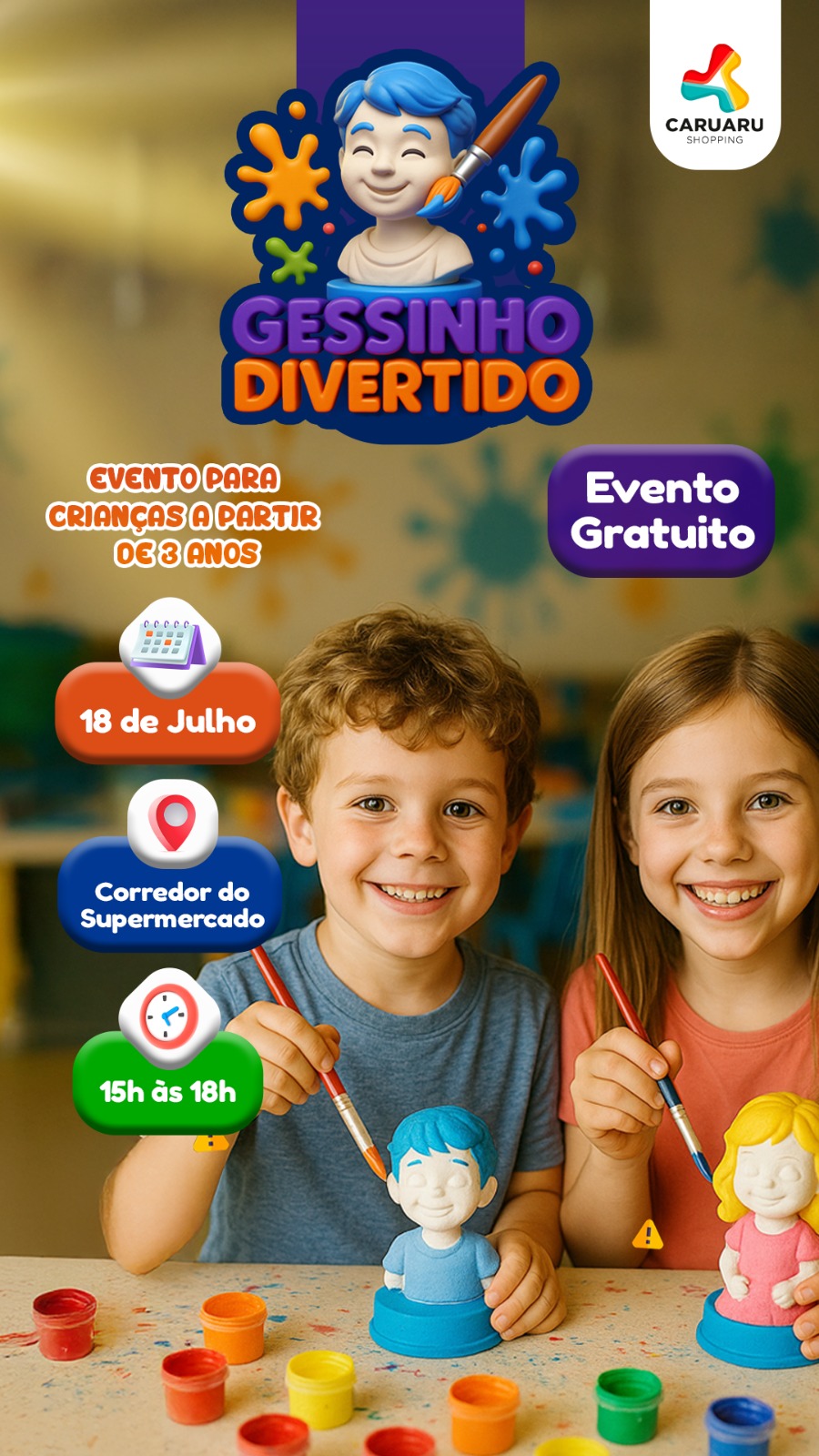 O Caruaru Shopping estará realizando, nesta sexta, dia 18 de julho, a oficina “Gessinho Divertido”. A atividade acontecerá no corredor do supermercado, das 15h às 18h.