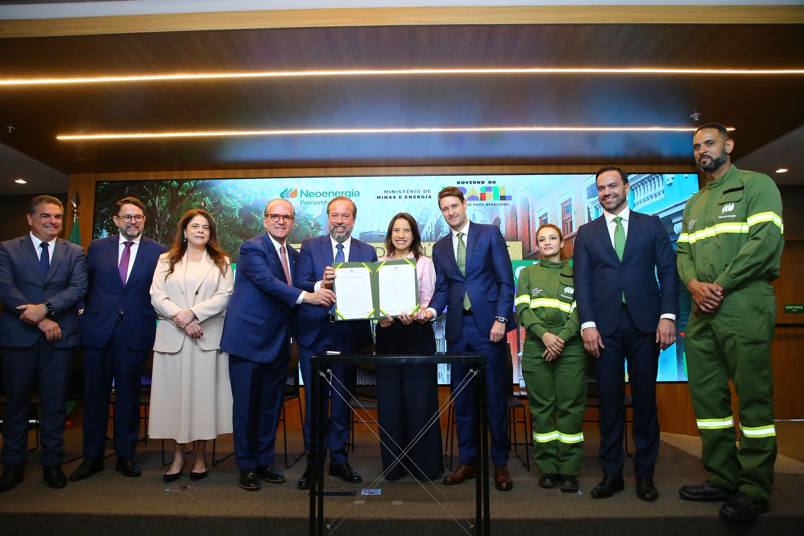 A Neoenergia Pernambuco acaba de se tornar a primeira distribuidora de energia elétrica do país a obter, de forma antecipada, a prorrogação do contrato de concessão junto ao Ministério de Minas e Energia (MME). Com cinco anos de antecedência, o novo contrato garante à empresa a possibilidade de antecipar investimentos de cerca de R$ 6 bilhões até 2029, acelerando melhorias no sistema elétrico e beneficiando mais de 4 milhões de clientes em todo o estado. A solenidade que formalizou a assinatura dos termos do contrato aconteceu, nesta terça-feira (23), em Brasília, com a presença do ministro de Minas e Energia, Alexandre Silveira, do CEO da Neoenergia, Eduardo Capelastegui, e do diretor-presidente da Neoenergia Pernambuco, Saulo Cabral.