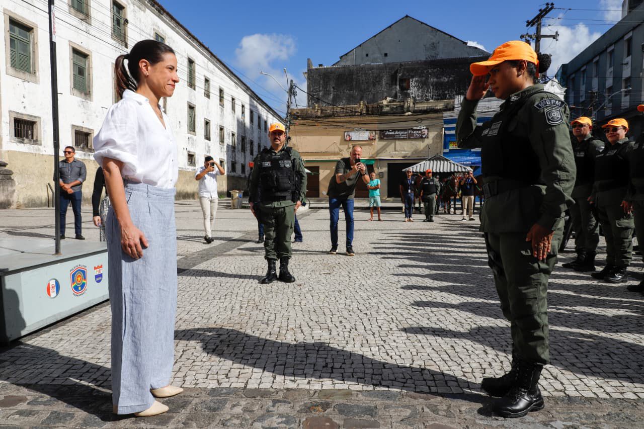 “Estamos dando início à Operação Papai Noel na Região Metropolitana e também em todos os polos regionais de compras, do Sertão ao Litoral. E o mais importante de tudo são os 13 mil lançamentos, que vão permitir ainda mais segurança no horário estendido e para o funcionamento do comércio no sábado e domingo. Isso tudo vai reforçar a presença que já existe da Polícia Militar aqui na Região Metropolitana. Que todos possam vir ao Centro e demais locais fazer suas compras e voltar para suas casas com tranquilidade”, ressaltou a governadora Raquel Lyra em evento realizado no Pátio do Carmo, no Centro do Recife.