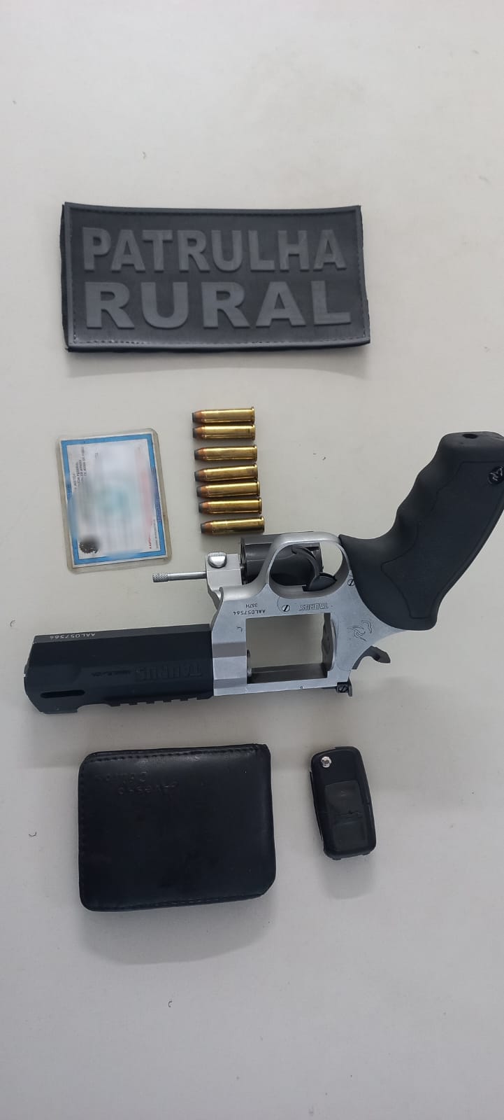 Durante a abordagem, foi constatado que o indivíduo portava um revólver calibre .357, devidamente municiado. Diante da situação, o homem foi conduzido à Delegacia de Plantão para a adoção das medidas cabíveis.
