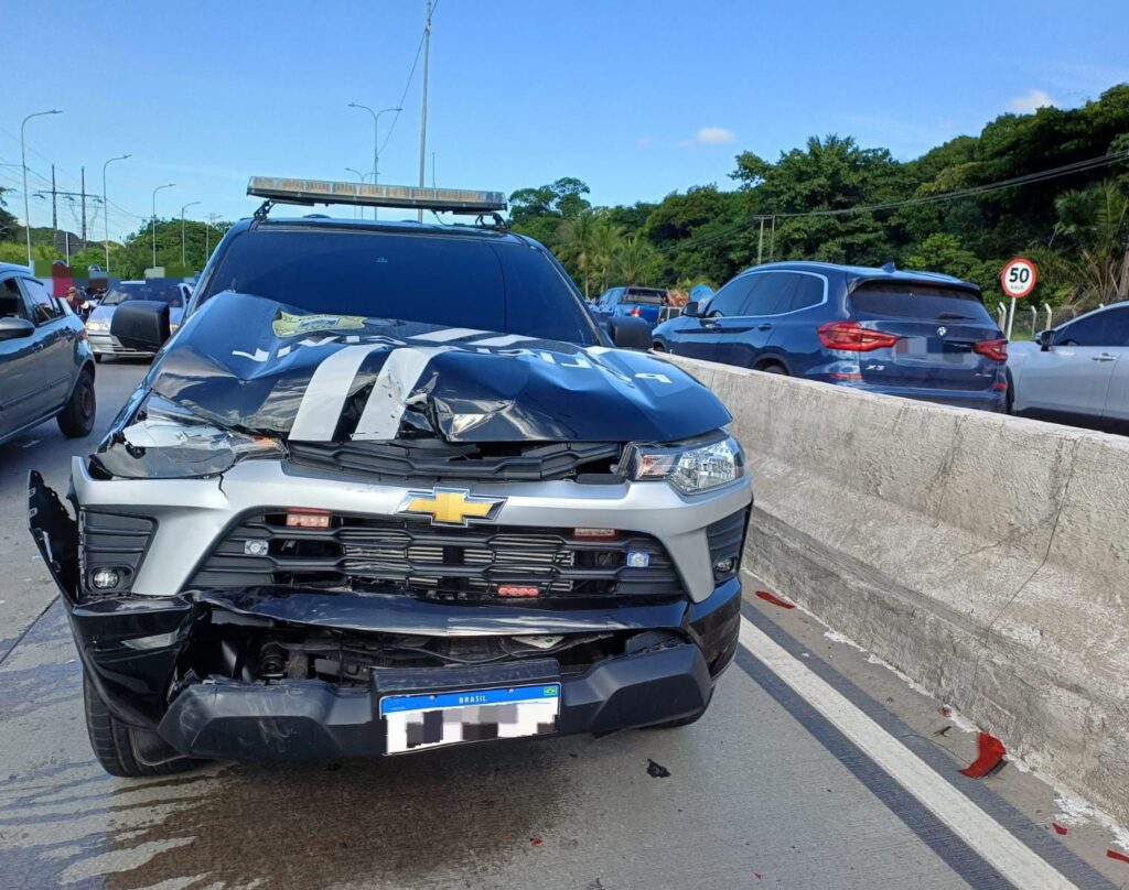Engavetamento com três viaturas da Polícia Civil é registrado na BR-232, no Recife