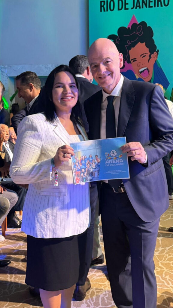 A diretora-presidente da Arena de Pernambuco, Missionária Michele Collins, apresentou, neste domingo (25), o Projeto Arena da Inclusão ao presidente da FIFA, Gianni Infantino, durante o evento de anúncio da identidade visual da Copa do Mundo Feminina de 2027, realizado no Rio de Janeiro. A iniciativa pernambucana ganhou projeção internacional ao ser apresentada à principal […]